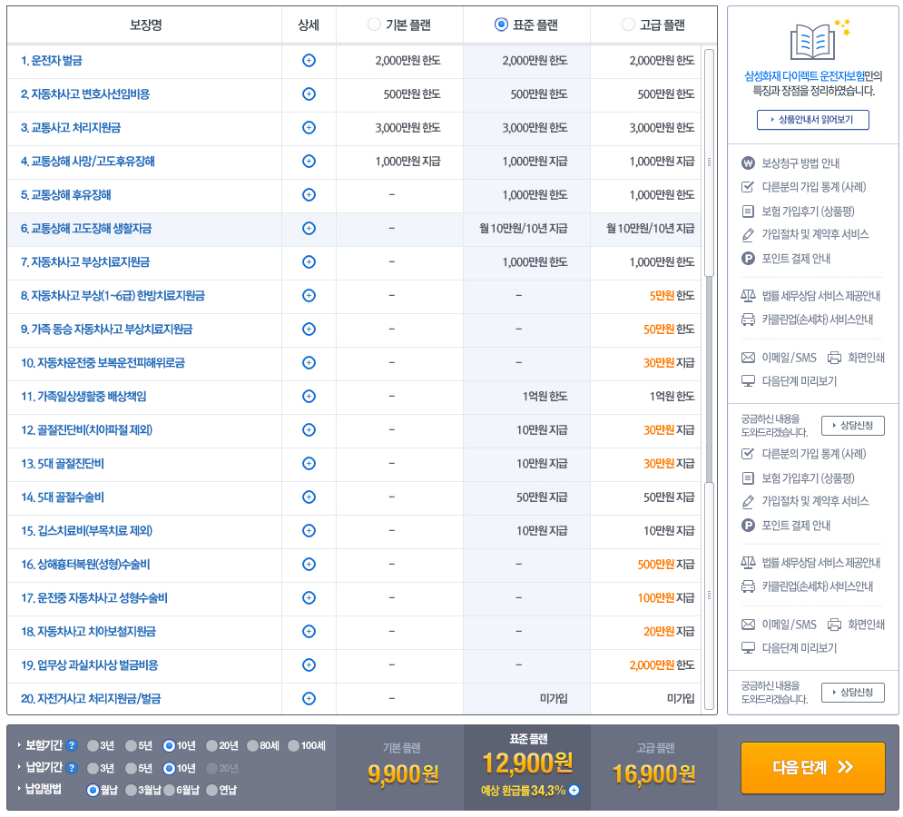 Tip. 두 가지 방법 모두에서 보상하는 형사합의금 지원, 벌금 지원, 변호사 선임 지원 보장은 중복 보상이 되지 않으므로 둘 모두를 가입할 필요는 없다.
