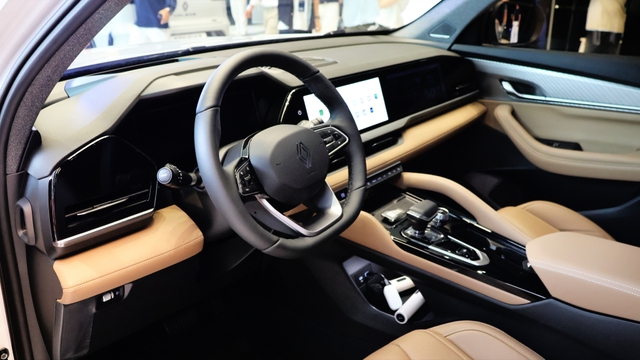 참고로 '에스프리 알핀' 트림의 전시차량이 바로 신규 색상 '새틴 유니버스 화이트' 컬러가 적용된 모습이다. 기존 유광 화이트 컬러의 그랑 콜레오스 대비, 차분하면서도 고급스러운 색감이 느껴지는 색상이다. 새틴 유니버스 화이트 색상 역시도 테크노 트림을 제외한 두 가지 등급에서 유료 옵션으로 선택 가능하다. 참고로 에스프리 알핀 트림의 경우, 로장주 로고&네이밍 엠블럼이 새틴 블랙 컬러로 변경된다. 또, 최상위 트림에 한해 '퓨어 라이트 그레이' 실내 색상 선택이 가능해졌다.