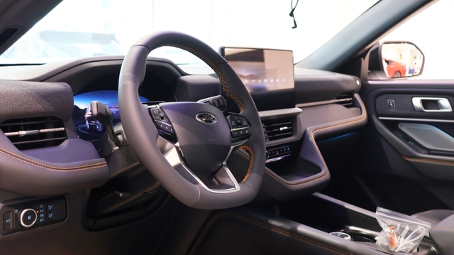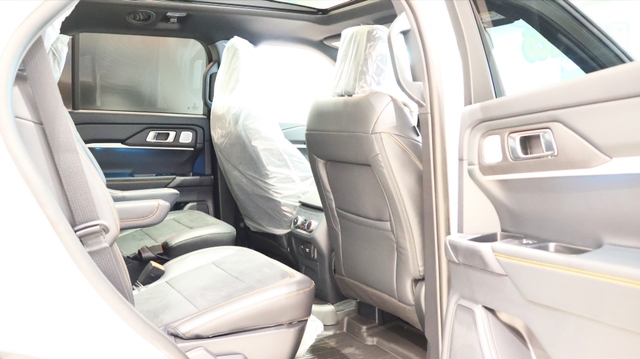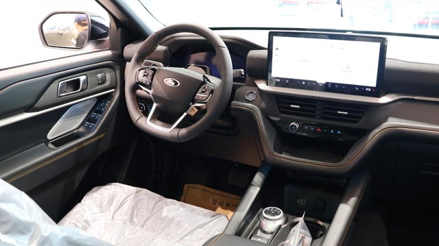 실내 공간이다. 뉴 익스플로러는 12.3인치 디지털 클러스터와 13.2인치 센터 스크린으로 인터페이스를 구축하며, 순정 내비게이션 업데이트를 중단하는 대신 폰 프로젝션 기능을 지원한다. 센터페시아 주요 기능에 대한 버튼과 스마트폰 수납함으로 구성되고, 센터 콘솔에는 로터리 타입 기어 레버가 배치된다. 스티어링 휠은 D 컷 형태, 패들 시프트를 포함하죠. 트레머 트림은 전용 시트와 스커프 플레이트, 옐로 스티치로 차별점을 가져온다. 아울러 B&O 14스피커와 코 파일럿 360 어시스트, 1열 마사지 시트 등 풀옵션 구성을 보여준다.