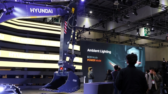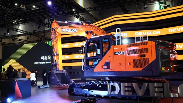 가장 먼저 미디어 브리핑을 시작한 HD현대는 계열사 HD현대 건설기계의 40톤급 굴착기 '현대 HX400'을 공개했다. 뒤이어 HD현대 인프라코어의 24톤급 굴착기 '디벨론 DX240'을 공개한다. HD현대는 차세대 건설기계를 앞세워 2030년까지 총 45만 대의 차량을 공급한다는 목표를 수립한 바 있다. 현재 건설 장비는 디젤 엔진을 중심으로 개발되는데, 앞으로는 전기 배터리 방식과 수소 연료 전지 탑재까지 '친환경 모빌리티'로서의 전환까지 계획한다. 또한 2030년에는 사람 조작 없이 스스로 작업이 가능한 수준의 무인화 4단계 건설기계 양산에 도전한다.
