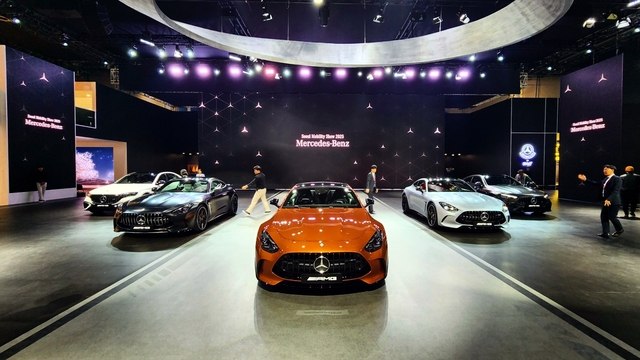 메르세데스-벤츠는 2세대로 거듭난 메르세데스-AMG GT 풀체인지를 국내 최초로 공개했다. 최상위 트림 GT 63 S E 퍼포먼스와 GT 55 4 MATIC+, 그 외에도 E53 AMG와 CLE53 AMG 등 다채로운 신규 모델을 전시한다. 함께 메르세데스-벤츠는 개인 맞춤형 제작 '마누팍투어' 프로그램에 대한 소개와 전시를 기획하고, 패션 브랜드 몽클레르와 협업한 'G클래스 패스트 투 퓨처'도 국내 최초로 선보이게 되었다. 하이엔드 럭셔리 '마이바흐'와 오프로더의 아이콘 'G' 그리고 AMG 라인업으로 구성된 메르세데스-벤츠의 전시부스는 가장 화려한 공간이다.